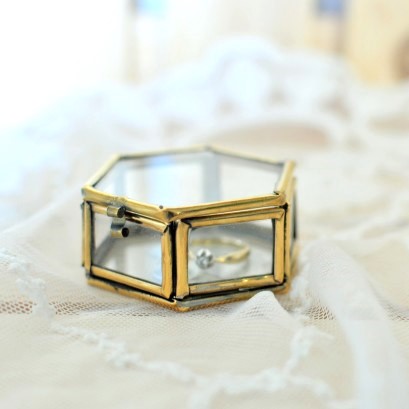 Szklane pudełko na pierścionek zaręczynowy – vintage